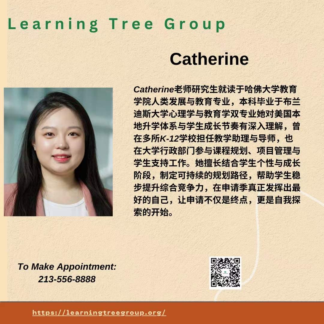 Catherine老师研究生就读于哈佛大学教育学院人类发展与教育专业,本科毕业于布兰迪斯大学心理学与教育学双专业她对美国本地升学体系与学生成长节奏有深入理解,曾在多所K-12学校担任教学助理与导师,也在大学行政部门参与课程规划、项目管理与学生支持工作。她擅长结合学生个性与成长阶段,制定可持续的规划路径,帮助学生稳步提升综合竞争力,在申请季真正发挥出最好的自己,让申请不仅是终点,更是自我探索的开始。